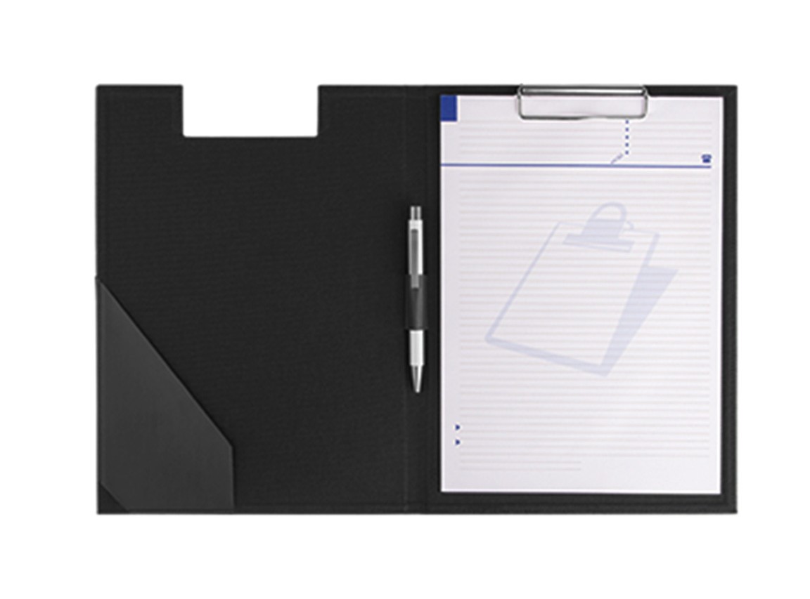 Деловна папка со книжен блок, држач за пенкало и џеб на внатрешната корица.