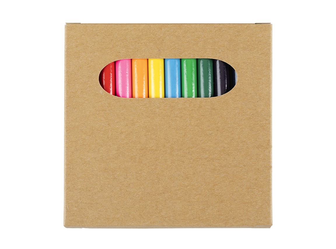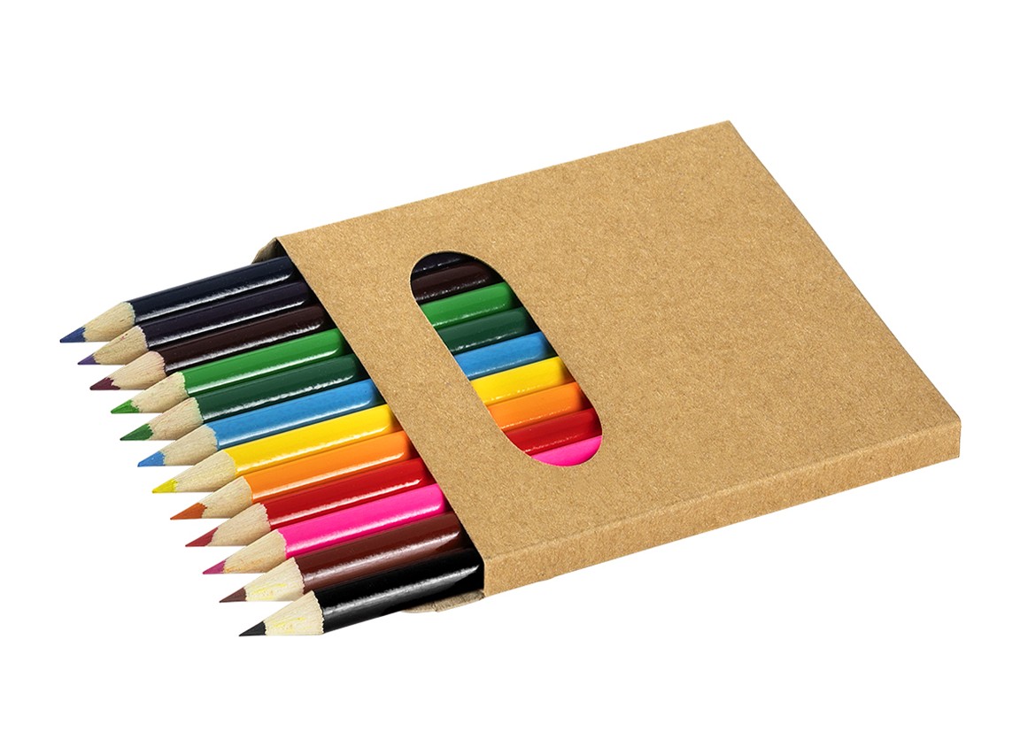Комплет од 12 дрвени боички во рециклирана картонска кутија.