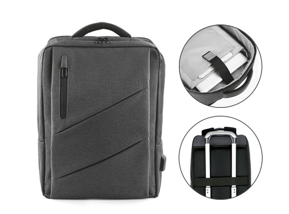 Висококвалитетен водоотпорен деловен ранец со посебни прегради за лаптоп и таблет, ергономски распоред на задната страна со ремен за багаж и патент со можност за проширување до 6см, поголема и помала преграда напред, страничен џеб, вграден USB кабел.