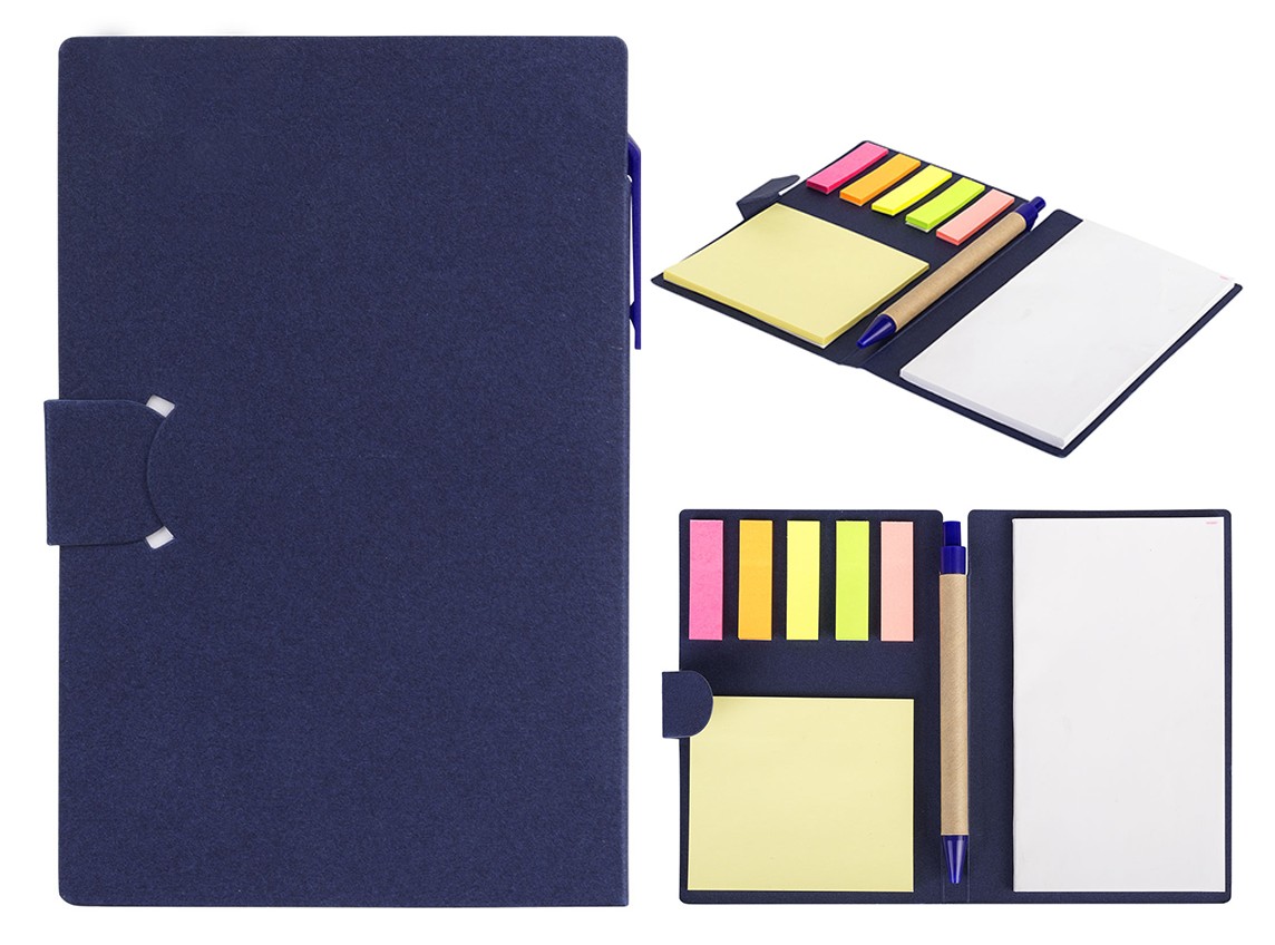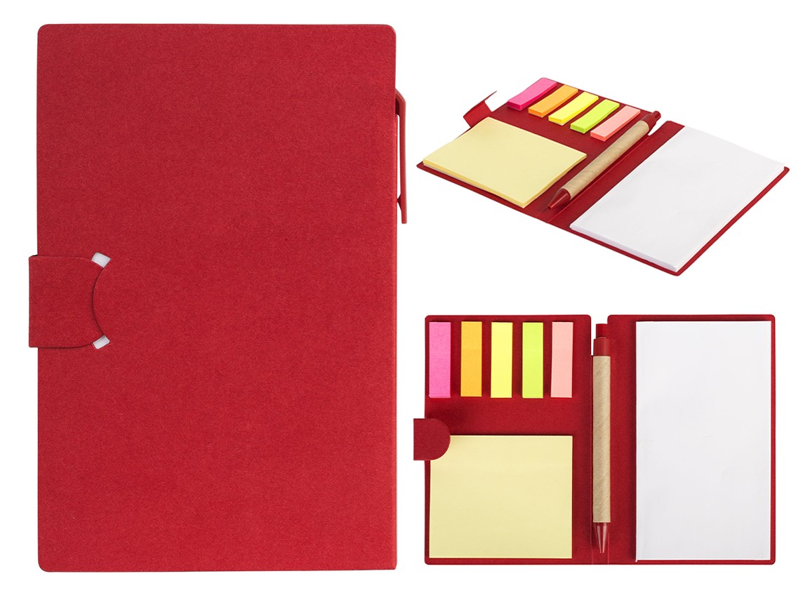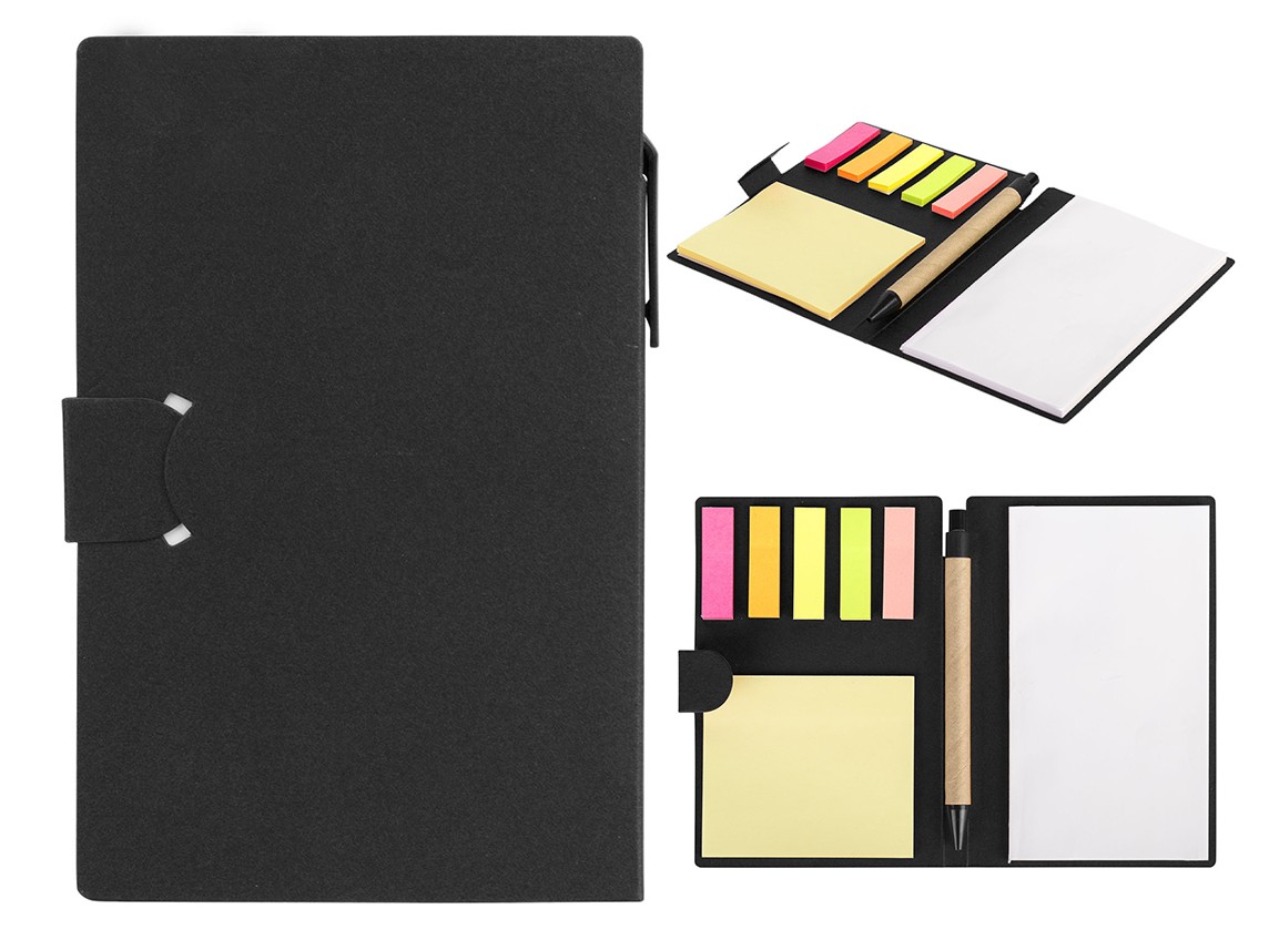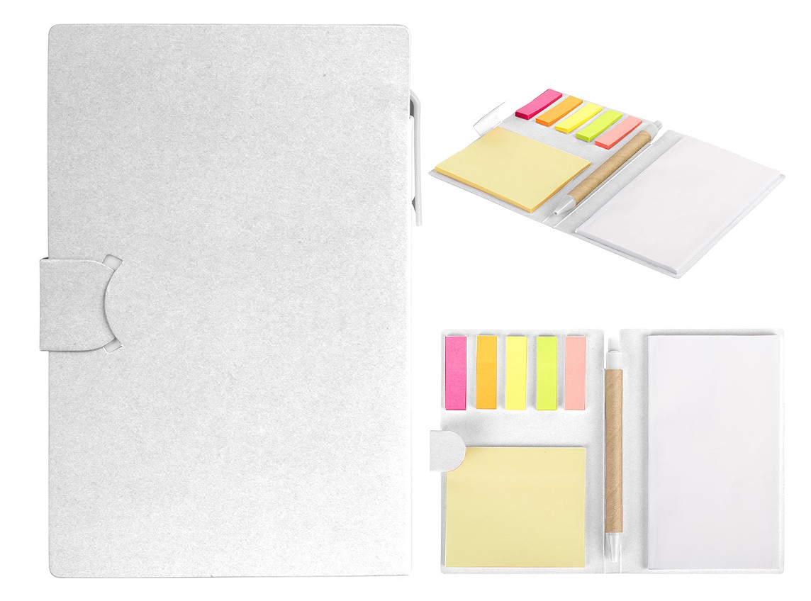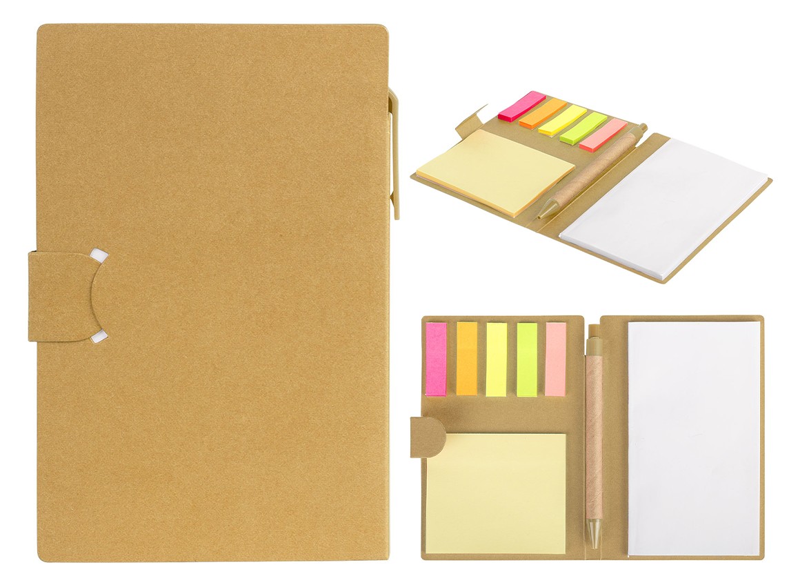 Биоразградливо тефтерче со лепенки во повеќе бои, самолепливи ливчиња и биоразградливо пенкало.